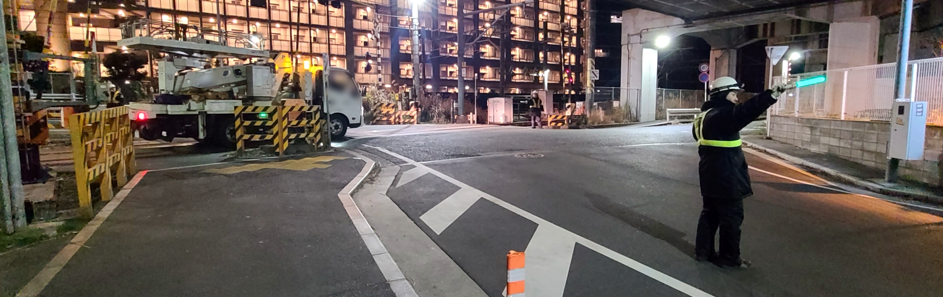 列車見張員を主として鉄道に付帯する交通誘導業務も行っています。