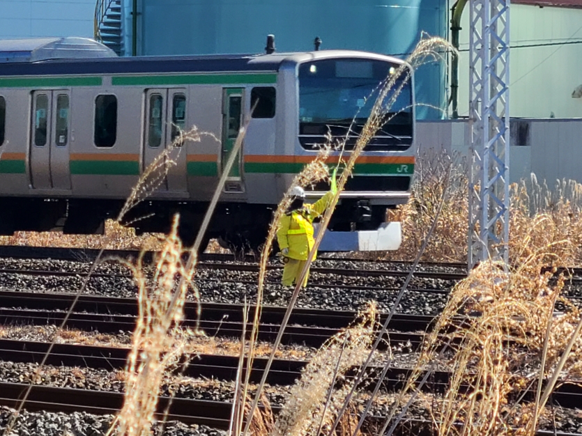鉄道工事に従事する作業員に列車の接近を知らせ、安全を確保し列車を無事に通過させる保安要員です。